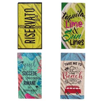 Telo mare pareo realizzato in 100% cotone, presenta delle frange sul bordo inferiore. Perfetto da usare anche come pareo. Colori assortiti. Misure: 90 x 170 cm